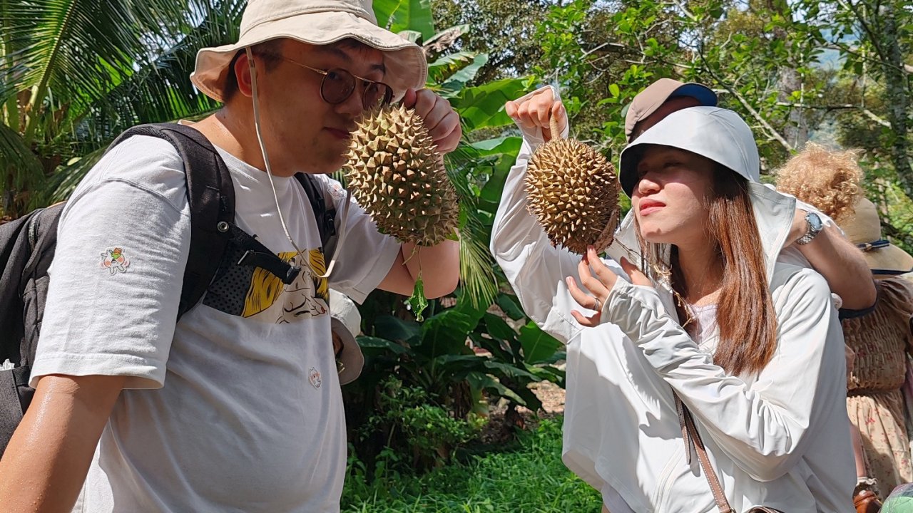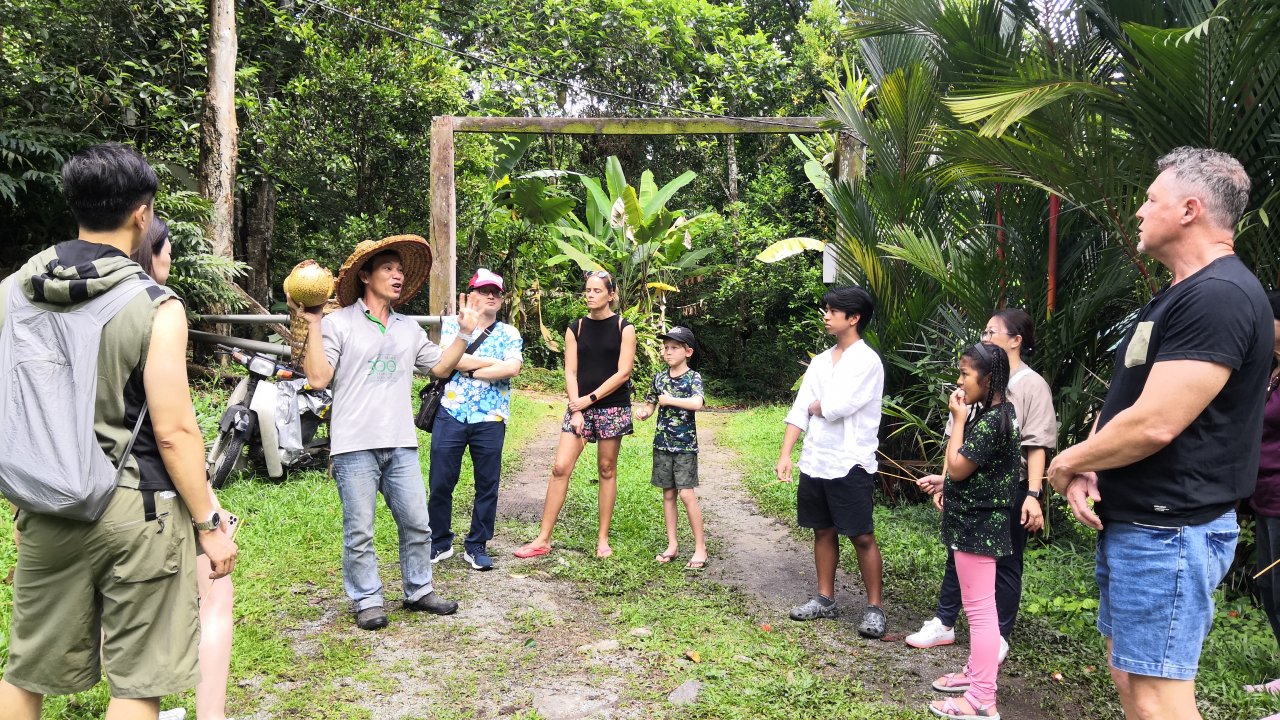 Our Durian Tasting Tour begins with a guided farm walk through lush orchards where you can pick and taste durians right from the trees. Along the way, explore a rich diversity of tropical fruits, local spices, and wild medicinal herbs thriving naturally in our chemical-free environment.